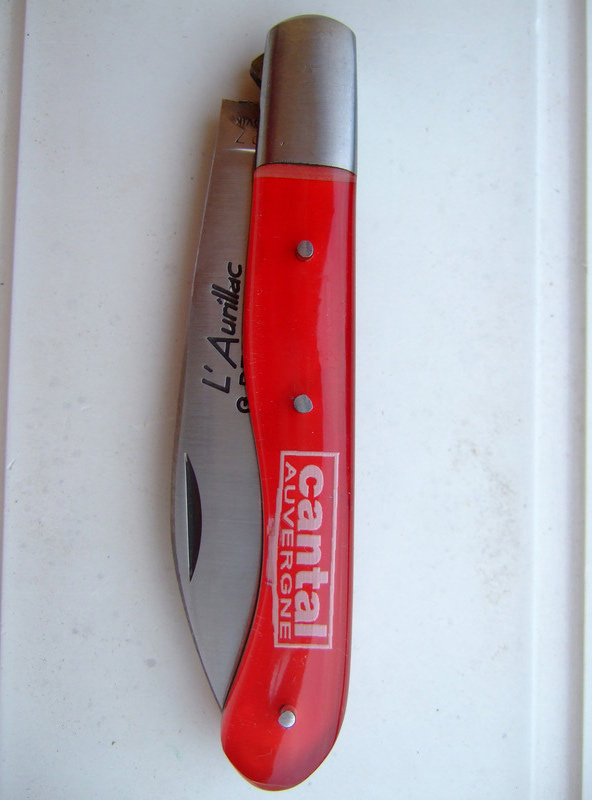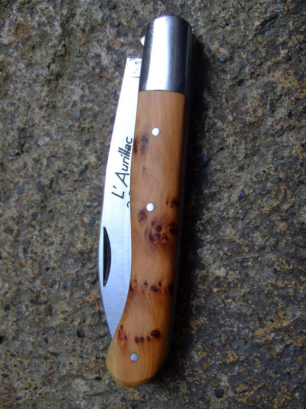 Ce couteau de poche centenaire a pour origine la ville d’Aurillac dans le Cantal. Sa lame très robuste et coupante forgée dans les meilleurs aciers, son large manche en corne ou en bois « qui tient bien dans la main », ont fait de ce couteau l’outil quotidien des paysans du Cantal.